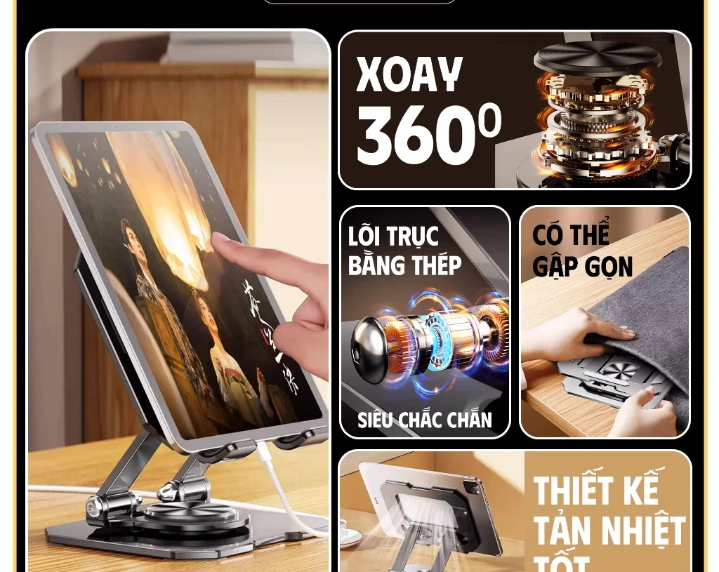 🔥 GIÁ ĐỠ MÁY TÍNH BẢNG / IPAD XOAY 360° – CHẮC CHẮN, GẬP GỌN, TẢN NHIỆT TỐT 🔥