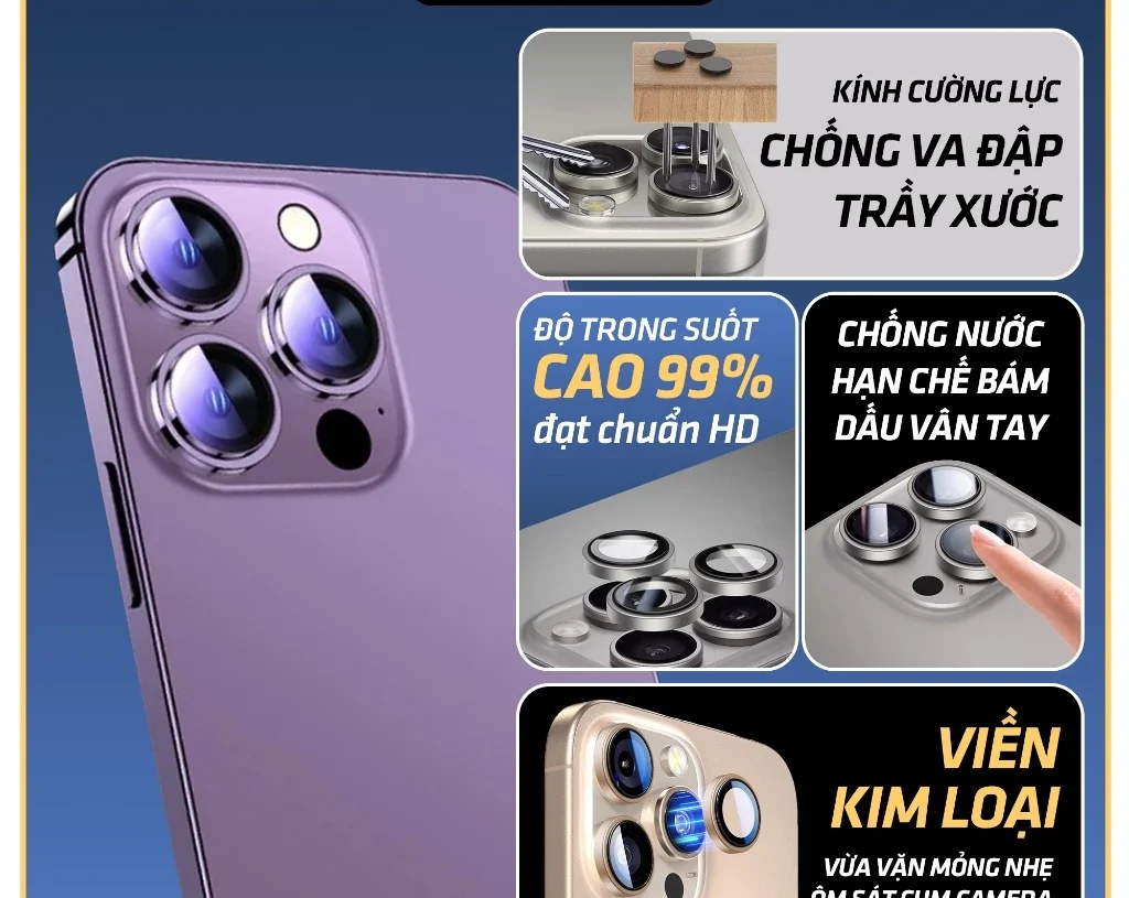 Kính cường lực iphone bảo vệ Camera kim loại với độ cứng 9H vượt trội, cứng gấp chục lần so với các sản phẩm khác, giúp bảo vệ tốt camera an toàn cho điện thoại