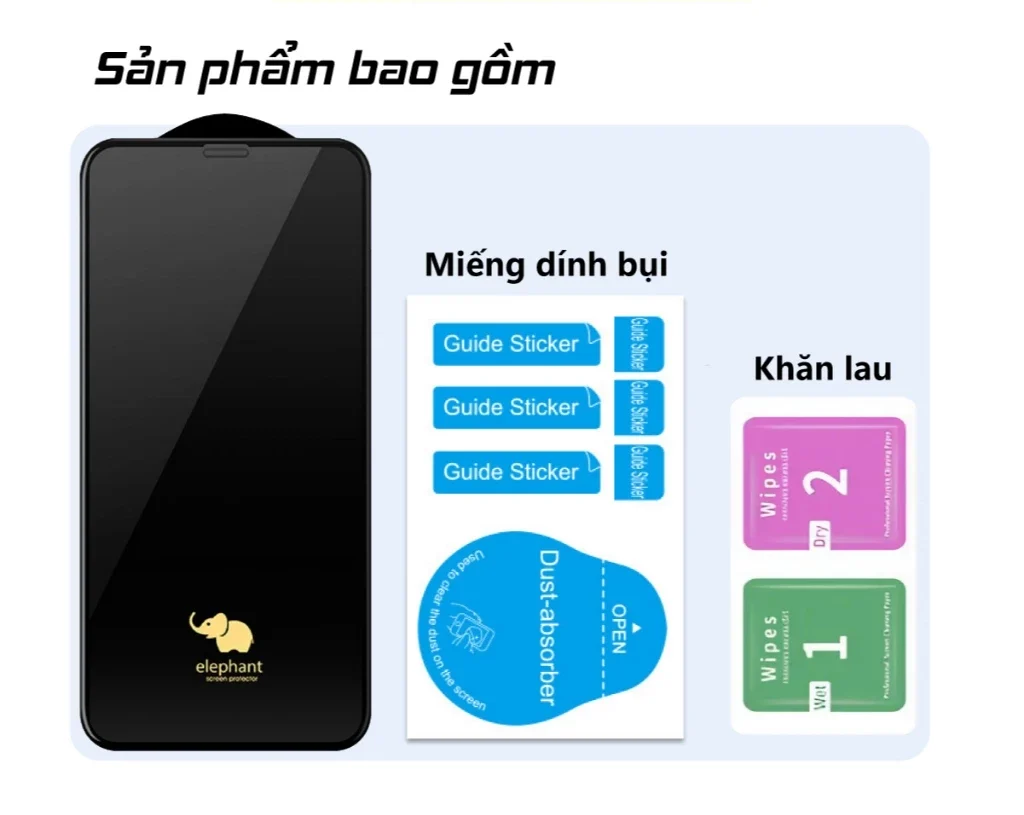 Kính Cường Lực Elephant WTP-018 sử dụng kính Asahi Nhật Bản với tiêu chuẩn độ cứng 9H kèm theo đó Kính Cường Lực Elephant WTP-018 sử dụng chất liệu Keo 280 AB Chống Tĩnh Điện hạn chế các trường hợp lỗi khi dán (bong bóng, không ăn keo,…)