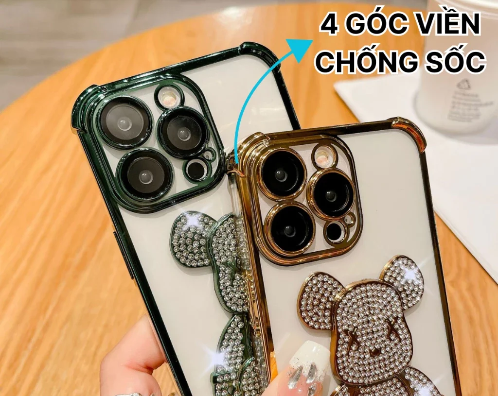 – Thiết kế độc đáo: Viền TPU mềm mại ôm sát thân máy, đính đá lấp lánh tạo hình gấu ngộ nghĩnh
